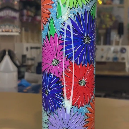 30 oz. Hogg Skinny Tumbler - Hand-Painted Flowers on Glitter Base