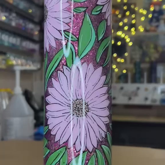 32 oz. Tipsy Magnolia Plump - Hand-Painted Pink Flowers on Glitter Base