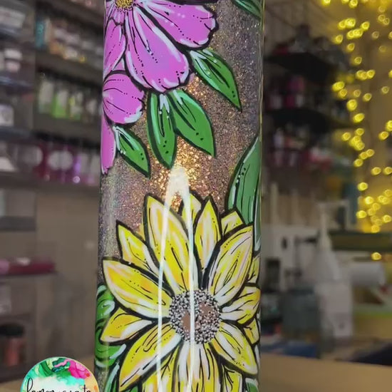 32 oz. Tipsy Magnolia Plump - Hand-Painted Flowers on Glitter Base