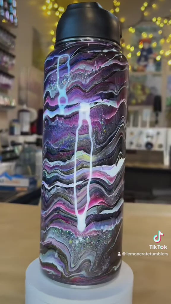 40 oz. Hogg Duo (2 Lids) Hydro Water Bottle 💜 Violet Sparkle Blurred Lines